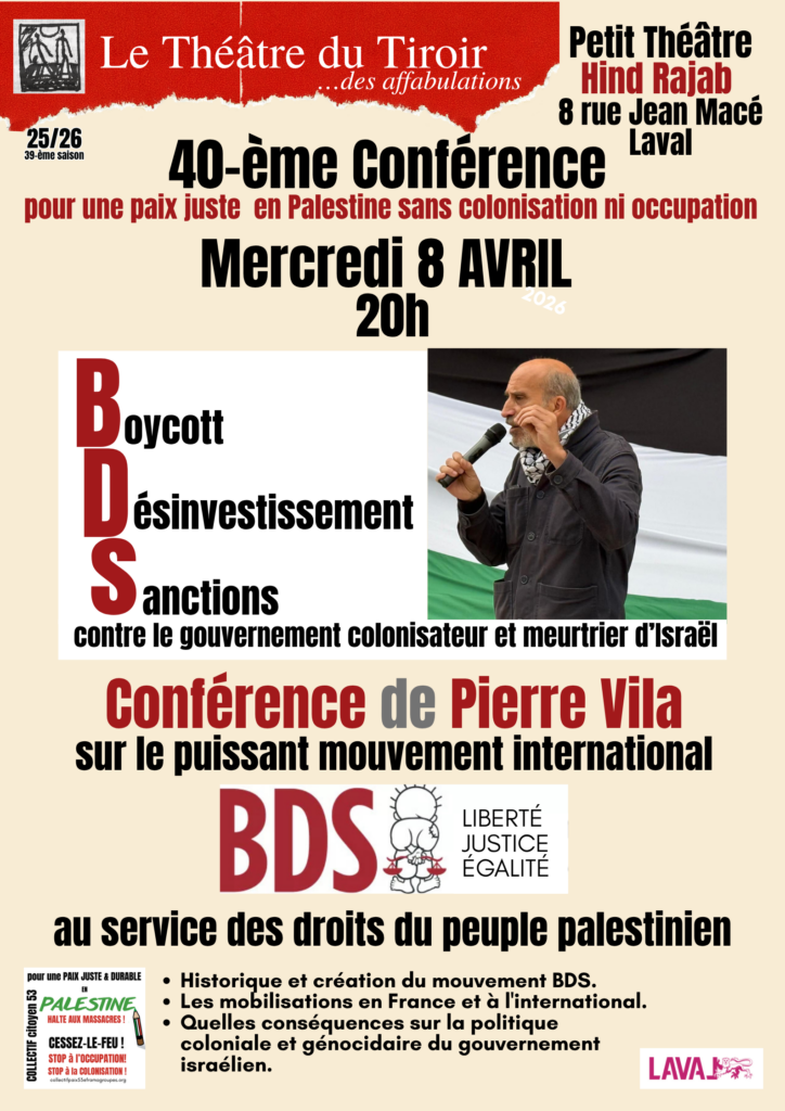 24ème conférence pour la paix mercredi 6 novembre 2024- 20h- Petit théâtre Jean Macé LAVAL