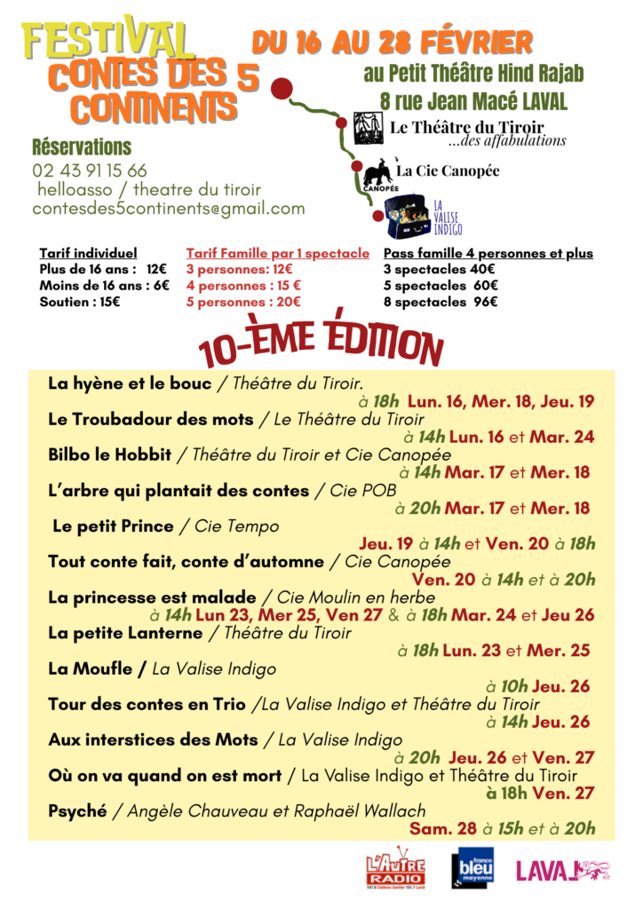 Réservations pour tous les spectacles : reservationtheatredutiroir@gmail.com 02 43 91 15 66. 06 76 29 62 9 1
