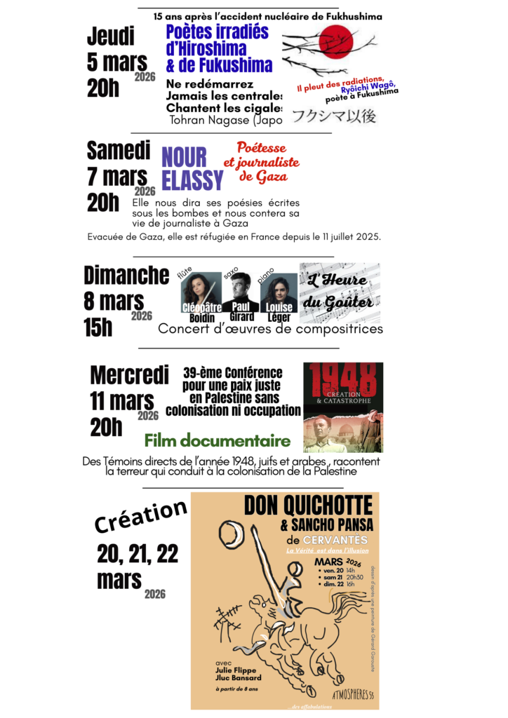 Entrée libre (avec une participation solidaire…) pour Mercredis de la Paix et les Jeudis de la Poésie